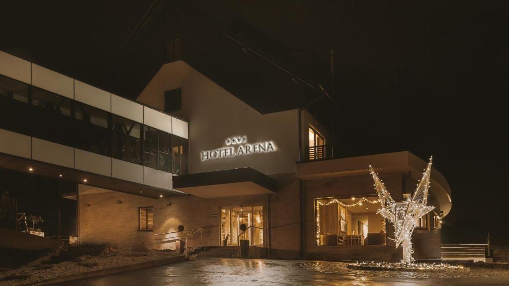 Maribor je druhé největší město Slovinska, leží na severovýchodě země a je známé svými vinicemi a nejstarší vinnou révou na světě. Městem protéká řeka Dráva, podél ní se táhnou již zmiňované krásné vinice. Ve městě najdete mnoho historických památek, včetně zachovalých městských domů a kostelů. Romantické duše budou nadšeny úzkými uličkami s tajemným nádechem. Milovníci zimních sportů, zejména lyžování, si mohou užít největší lyžařské středisko Slovinska Mariborsko Pohorje. Hotel Arena****Hotel Arena je obklopen úchvatnými výhledy a je ideální volbou pro milovníky přírody a outdoorových aktivit. Hotel se nachází v těsné blízkosti cyklistických a turistických stezek a leží přímo pod sjezdovkou, nabízí tak ideální výchozí bod. Jen kousek pěšky od hotelu se nachází Bike Park Pohorje, který nabízí dobře udržované stezky pro horská kola všech úrovní - od tras vhodných pro rodiny s dětmi až po sjezdy pro experty. Hotel je vybaven recepcí, restaurací, barem, konferenční místností, parkovištěm za poplatek 8 €/den, fitness centrem a wellness centrem. Klienti mohou za poplatek využít služeb wellness, kde je k dispozici finska sauna, finska sauna s chromoterapií, infrasauna, parní lázeň, ledová jeskyně a studený bazén. Dále si klienti mohou za poplatek objednat různé masáže, klasické masáže, relaxační masáže, či relaxační masáže chodidel. V hotelu je k dispozici také půjčovna kol za poplatek dle ceníku hotelu. Na recepci akceptují platby kartami Visa Mastercard a Maestro card. Jednolůžkový pokoj ArenaPokoj v podkroví o rozloze cca 15 m² je vybaven vlastním sociálním zařízením, fénem, klimatizací, TV, telefonem, minibarem, trezorem a psacím stolem. Maximální obsazení pokoje je 1 osoba. Dvoulůžkový pokoj Arena v podkrovíPokoj v podkroví o rozloze cca 16-18 m² je vybaven vlastním sociálním zařízením, manželským lůžkem, fénem, klimatizací, TV, telefonem, minibarem, trezorem a psacím stolem. Maximální obsazení pokoje jsou 2 dospělé osoby a 1 dítě do 6,99 let na lůžku s rodiči. Dvoulůžkový pokoj ArenaPokoj Arena o rozloze cca 22 m² je vybaven vlastním sociálním zařízením, manželským lůžkem, fénem, klimatizací, TV, telefonem, minibarem, trezorem a psacím stolem. Maximální obsazení pokoje jsou 2 dospělé osoby a 1 dítě do 6,99 let na lůžku s rodiči. Dvoulůžkový pokoj ComfortPokoj Comfort o rozloze cca 28 m² je vybaven vlastním sociálním zařízením, 2 oddělenými lůžky nebo manželským lůžkem, fénem, klimatizací, TV, telefonem, minibarem, trezorem a psacím stolem. Maximální obsazení pokoje jsou 2 dospělé osoby a 1 dítě do 6,99 let na lůžku s rodiči. Dvoulůžkový pokoj Comfort s balkonemPokoj Comfort o rozloze cca 28 m² je vybaven vlastním sociálním zařízením, 2 oddělenými lůžky nebo manželským lůžkem, fénem, klimatizací, TV, telefonem, minibarem, trezorem, psacím stolem a balkonem. Maximální obsazení pokoje jsou 2 dospělé osoby a 1 dítě do 6,99 let na lůžku s rodiči. Dvoulůžkový pokoj Comfort s balkonem a výhledem na sjezdovkuPokoj Comfort o rozloze cca 28 m² je vybaven vlastním sociálním zařízením, 2 oddělenými lůžky nebo manželským lůžkem, fénem, klimatizací, TV, telefonem, minibarem, trezorem, psacím stolem a balkonem. Maximální obsazení pokoje jsou 2 dospělé osoby a 1 dítě do 6,99 let na lůžku s rodiči. Dvoulůžkový pokoj s výhledem na sjezdovkuDvoulůžkový pokoj o rozloze cca 25-28 m² je vybaven vlastním sociálním zařízením, 2 oddělenými lůžky nebo manželským lůžkem, fénem, klimatizací, TV, telefonem, minibarem, trezorem a psacím stolem. Maximální obsazení pokoje jsou 2 dospělé osoby a 1 dítě do 6,99 let na lůžku s rodiči. Arena SuiteApartmán o rozloze cca 30 m² je vybaven vlastním sociálním zařízením, manželským lůžkem, přistýlkou, fénem, klimatizací, TV, telefonem, minibarem, trezorem a psacím stolem. Maximální obsazení pokoje jsou 3 dospělé osoby. Arena SuiteApartmán o rozloze cca 30 m² je vybaven vlastním sociálním zařízením, manželským lůžkem, přistýlkou, fénem, klimatizací, TV, telefonem, minibarem, trezorem a psacím stolem. Maximální obsazení pokoje jsou 3 dospělé osoby. Comfort SuiteApartmán o rozloze cca 80 m² je vybaven vlastním sociálním zařízením, manželským lůžkem, přistýlkou, fénem, klimatizací, TV, telefonem, minibarem, trezorem a psacím stolem. Maximální obsazení pokoje jsou 3 dospělé osoby. Stravování formou snídaně nebo polopenze