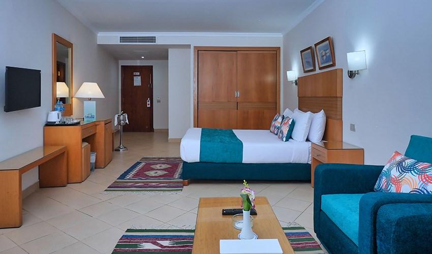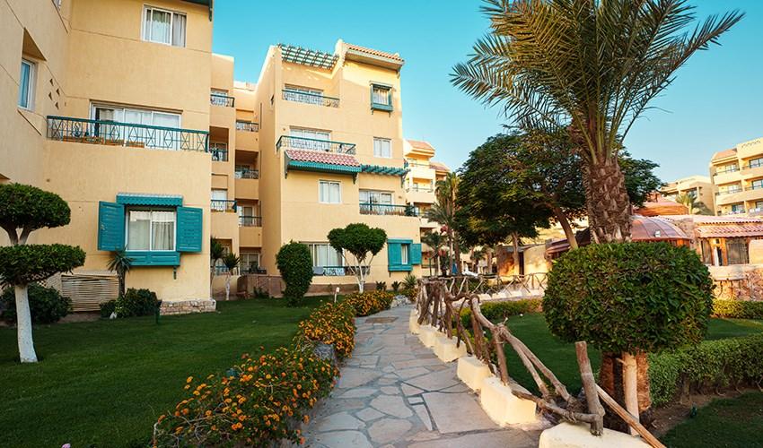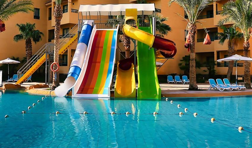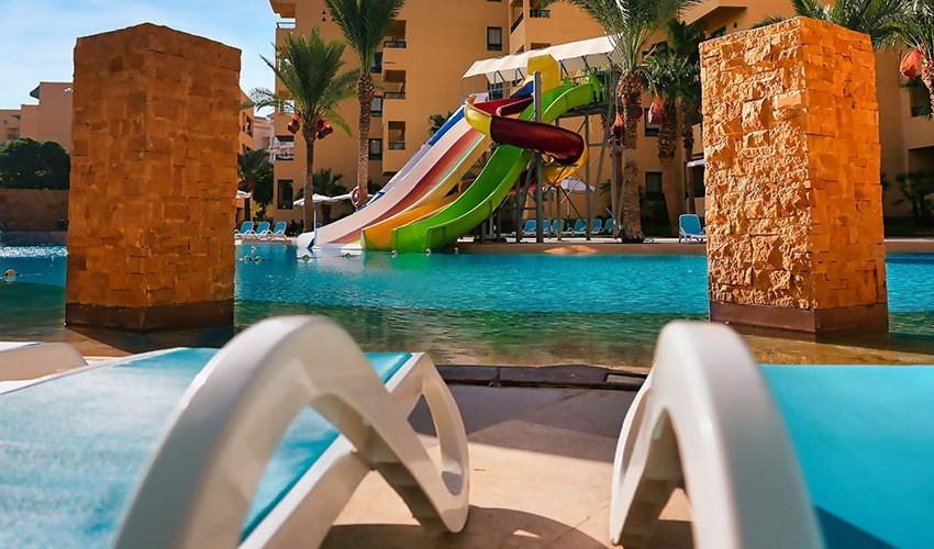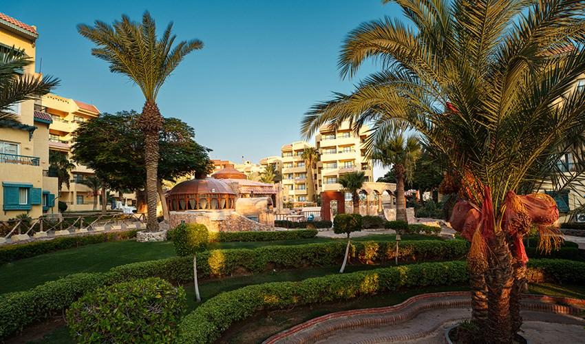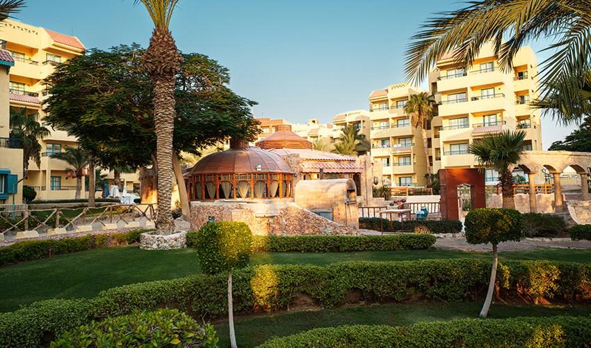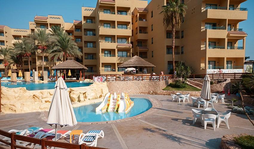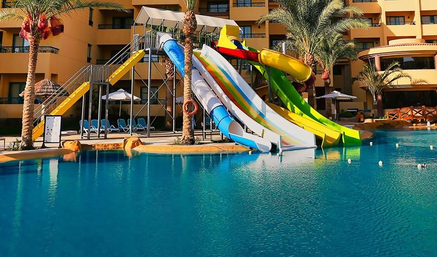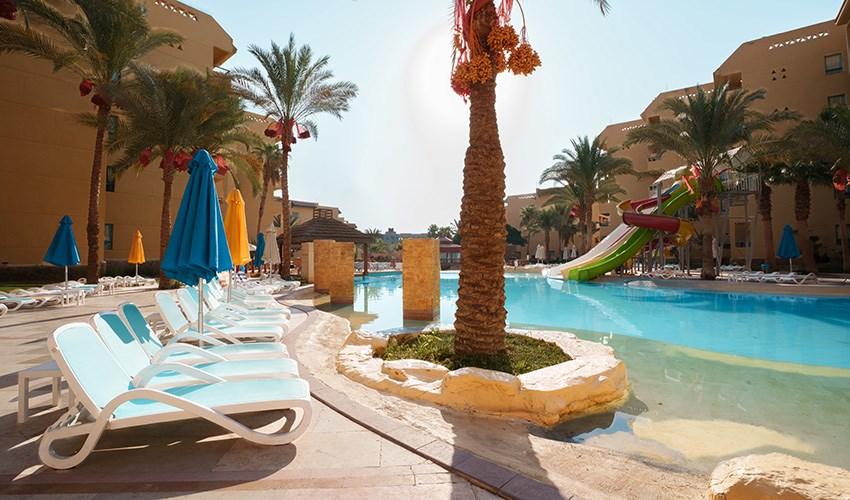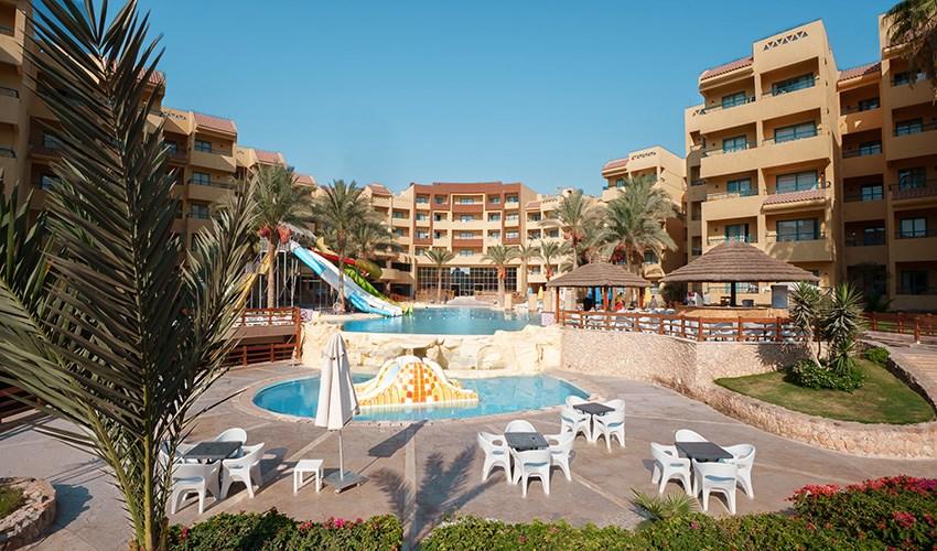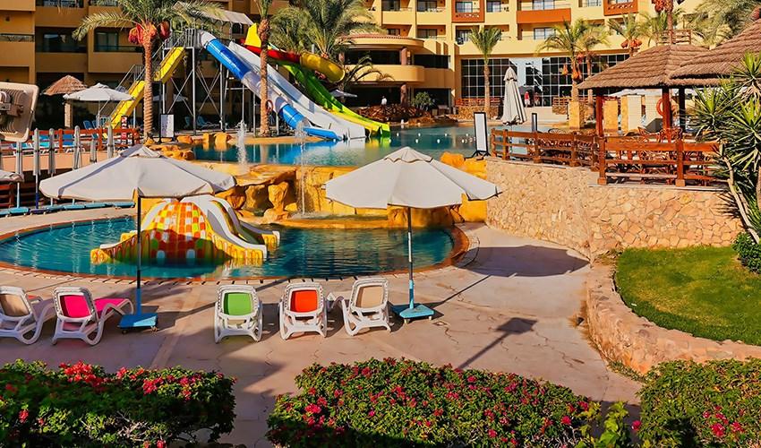 Eagles Downtown Zahabia Resort & Aqua Park v Hurghadě je čtyřhvězdičkový resort, který hostům nabízí spojení komfortu i zábavy jen pár kroků od Rudého moře. Nachází přibližně 2 km od centra města, což je ideální poloha pro ty, kdo chtějí kombinovat plážový odpočinek s výlety a nočním životem. Areál disponuje několika venkovními bazény, aquaparkem se skluzavkami a odděleným dětským bazénem, takže zábava pro děti i dospělé je zaručena. Součástí jsou také wellness služby, fitness centrum a široká nabídka sportovních a vodních aktivit pro aktivní hosty. Restaurace nabízí bohaté bufety s místní i mezinárodní kuchyní, denní občerstvení, snack bary a večerní show program, takže gastronomická nabídka potěší i náročnější hosty. Resort je vhodný zejména pro rodiny s dětmi - animační program, dětské hřiště i mini klub zajistí, že se děti nenudí, zatímco rodiče mohou relaxovat. Kromě relaxu u moře nebo u bazénu lze využít i okolí - nákupy v Hurghadě, výlety lodí, potápění nebo šnorchlování. |