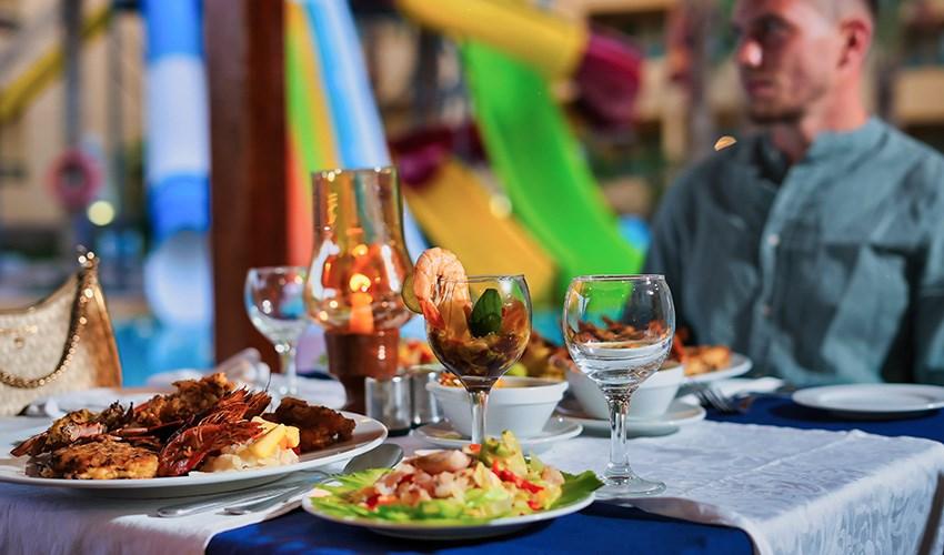 All inclusive - snídaně, obědy a večeře formou bufetu, občerstvení během dne. Neomezené množství vybraných nealkoholických a alkoholických nápojů místní výroby v časech a místech určených hotelem (10:00-24:00). |