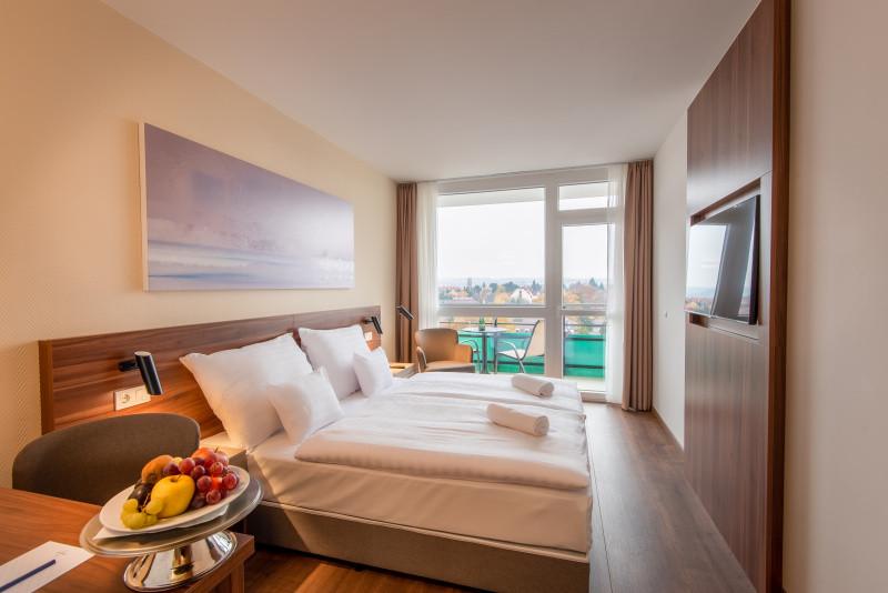 Vybavení: recepce s nepřetržitým provozem, hotelová restaurace s bufetovou i à la carte nabídkou a příjemný lobby bar. Hosté mohou využít bezplatné Wi-Fi připojení v celém objektu, hotelové parkoviště a garáže za poplatek a výtahy usnadňující pohyb po budově. Součástí vybavení je také možnost zapůjčení županu. Velkou výhodou je přímé kryté spojení s lázeňským centrem, díky kterému mohou hosté přecházet pohodlně a v suchu přímo z hotelu do wellness areálu. Ubytování: 2lůžkové pokoje standard s možností 1 přistýlky pro dítě do 14 let, koupelna se sprchou nebo vanou/WC, LCD TV/sat, balkon, klimatizace, fén, trezor (100922); 2lůžkové pokoje superior s výhledem na jezero s možností 1 přistýlky pro dítě do 14 let, koupelna se sprchou nebo vanou/WC, LCD TV/sat, balkon, klimatizace, fén, trezor (100923); vždy minibar, vysoušeč vlasů, sejf, Wi-Fi. Internet: Wi-Fi zdarma. Stravování: polopenze - snídaně a večeře formou bufetu. Sport a zábava: