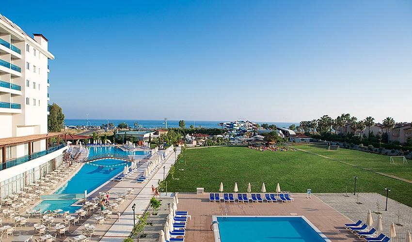Luxusní pětihvězdičkový Hotel Kahya Resort Aqua & Spa, situovaný pouhých 50 m od oblázkovo-písečné pláže, nabízí dokonalé zázemí pro pohodovou dovolenou. Pláž je snadno dostupná přes podchod, který zajišťuje bezpečný přístup. Hotel se nachází v klidné oblasti nedaleko centra letoviska Konakli, kde naleznete obchody, restaurace a další možnosti zábavy. Hosté si mohou užívat venkovní bazén, wellness centrum a aquapark s tobogány, který ocení zejména děti. Pro zpestření pobytu jsou pravidelně pořádány zábavní programy, které zaujmou děti i dospělé, a k dispozici je i miniklub pro nejmenší. Hotel Kahya Resort Aqua & Spa je ideálním místem jak pro rodiny s dětmi, tak pro páry hledající kombinaci relaxace a zábavy.