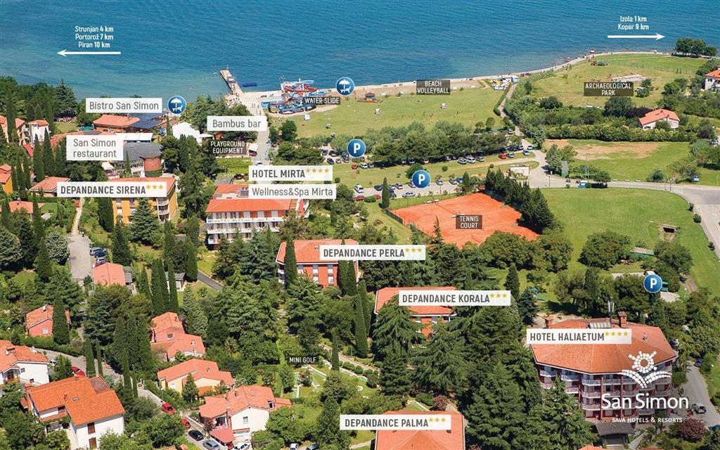 Izola je jedním z nejmalebnějších přímořských městeček Slovinska, které si uchovalo svůj autentický charakter. Původně rybářská osada s výrazným italským vlivem se může pyšnit zachovalým historickým centrem s úzkými uličkami, barevnými domky a starobylými památkami. Při procházkách městem na vás dýchne jedinečná atmosféra, kterou podtrhují útulné kavárny, kostely i malá náměstí. Velkým lákadlem jsou zdejší pláže, které nabízejí rozmanitost pro všechny návštěvníky. Najdete tu písčité, oblázkové i travnaté plochy, přírodní úseky s křišťálově čistou vodou a dokonce i pláž vyhrazenou pro psy. Díky klidnému moři a pozvolnému vstupu do vody je Izola ideální destinací pro rodiny s dětmi i pro milovníky koupání a vodních sportů. Město je živé také kulturně a společensky - během léta se zde pořádají různé akce, festivaly a slavnosti. Izola je vyhlášená svou gastronomií, v místních restauracích si můžete dopřát čerstvé ryby, mořské plody i další středomořské speciality. K místním tradicím patří výroba kvalitního olivového oleje a vína, které krásně dokreslují autentickou chuť dovolené u slovinského Jadranu. Hotel Mirta****Hotel Mirta se nachází v rozlehlém resortu San Simon, cca 15 minut pěšky od centra letoviska Izola a asi 190 m od hotelové pláže San Simon. Resort tvoří dva hotely a několik depandancí, hosté tak mohou využívat široké zázemí celého areálu. Hotel byl otevřen v roce 2008 a nabízí ubytování ve 44 pokojích. Součástí hotelu je wellness centrum Mirta Wellness & Spa (za poplatek dle ceníku na místě), které zahrnuje tureckou parní lázeň, finskou saunu, bylinnou finskou saunu a infra saunu. K dispozici je více než 15 druhů masáží, kosmetické a beauty služby (pleťová ošetření, manikúra, pedikúra, depilace, péče o tělo) i léčebné procedury, například bahenní zábaly ze solných pánví. Klienti mají v ceně volný vstup do krytého bazénu s mořskou vodou, který se nachází v sousedním hotelu Haliaetum (uzavřen v červenci a srpnu). Recepce je otevřena 24 hod. denně v sousedním hotelu Haliaetum. Hosté mají k dispozici WiFi připojení zdarma, stravování probíhá v restauraci společné pro celý resort. Parkování je pro hosty zdarma - menší parkoviště se nachází před hotelem Haliaetum, větší parkoviště je k dispozici cca 100 m od hotelu, je zapotřebí jet po ulici Tomažičeva a poté odbočit doleva na ulici Jagodje (přístupné přes závoru s kartičkou k vyzvednutí na recepci). Pobyt s domácími mazlíčky je možný po předchozí domluvě a za poplatek. Platit je možné platebními kartami Mastercard, Diners, Visa a Maestro. Dvoulůžkový pokojPokoj o rozloze cca 25 m² s manželským lůžkem (180×200 cm) nebo dvěma oddělenými lůžky (90×200 cm). Součástí je balkon, vlastní koupelna se sprchou, satelitní TV, telefon, minibar, klimatizace, WiFi, trezor a fén. Dvoulůžkový pokoj s možností 1 přistýlkyPokoj o rozloze cca 31 m² s manželským lůžkem (180×200 cm) a rozkládací pohovkou (90×200 cm). Součástí je balkon, vlastní koupelna se sprchou, satelitní TV, telefon, minibar, klimatizace, WiFi, trezor a fén. Rodinný pokojPokoj o rozloze cca 35 m² s manželským lůžkem (180×200 cm) a rozkládací pohovkou (180×200 cm). Součástí je balkon, vlastní koupelna se sprchou, satelitní TV, telefon, minibar, klimatizace, WiFi, trezor a fén. Stravování formou snídaně a polopenze