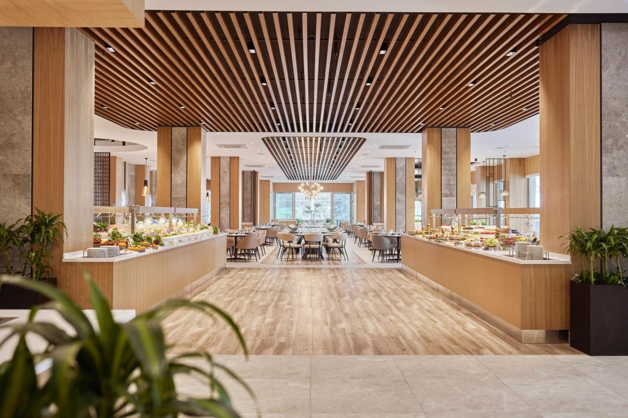 • Zahrnuje snídaně (7.00-10.00), pozdní snídaně (10.00-10.30), obědy (12.30-14.30), večeře formou bufetu (19.30-21-30) a noční občerstvení (00.00-01.00)