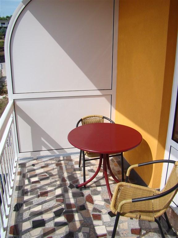 Vila nabízí ubytování v apartmánech a studiích. Všechny mají vlastní sociální zařízení, kuchyňku, klimatizaci (v ceně), TV/SAT, balkon či terasu. Studia mají kuchyňku a ložnici v jedné místnosti. WiFi připojení zdarma. K dispozici jsou následující apartmány a studia: - A2/2(+2) (č. P2A, č. P2B a č. 2-4) - čtyřlůžkový apartmán s možností dvou přistýlek, má dvě ložnice, maximální obsazenost jsou 4 dospělí a 2 děti do 6,99 let. - A1/2(+3) (č. P1, č. P3 a č. 2-7) - dvoulůžkový apartmán s možností tří přistýlek, má jednu ložnici, maximální obsazenost jsou 3 dospělí a 2 děti. - A1/2(+2) (č. 2-5A, č. 2-6B, č. 1-3A) - dvoulůžkový apartmán s možností dvou přistýlek, má jednu ložnici. - S1/2(+2) (č. 2-5B a č. 2-6A) - dvoulůžkové studio s možností dvou přistýlek, má pohled na moře, maximální obsazenost jsou 2 dospělí a 2 děti do 6,99 let nebo 3 dospělí a 1 dítě do 2,99 let. - A2/2(+2) (č. 1-1 a č. 1-2) - čtyřlůžkový apartmán s možností dvou přistýlek, má dvě ložnice, pohled na moře, maximální obsazenost jsou 4 dospělí a 2 děti do 6,99 let. - S1/2(+2) (č. 1-3B a č. 1-4A) - dvoulůžkové studio s možností dvou přistýlek. - S1/2(+1) (č. 1-4B) - dvoulůžkové studio s možností jedné přistýlky. Apartmány orientované na mořskou stranu: č. P2A, P2B, 2-5A, 2-6B, 1-3A, 2-5B, 2-6A, 1-3B, 1-4A a 1-4B. Kromě apartmánů č. 1-1 a 1-2 mají všechny apartmány alespoň částečný pohled na moře. |