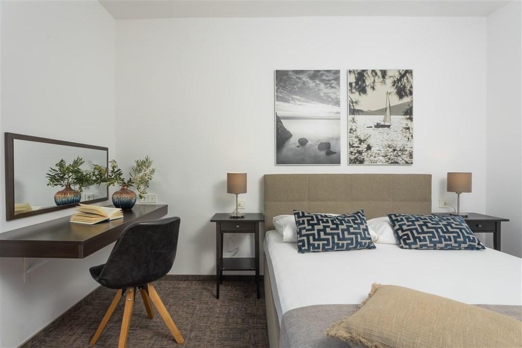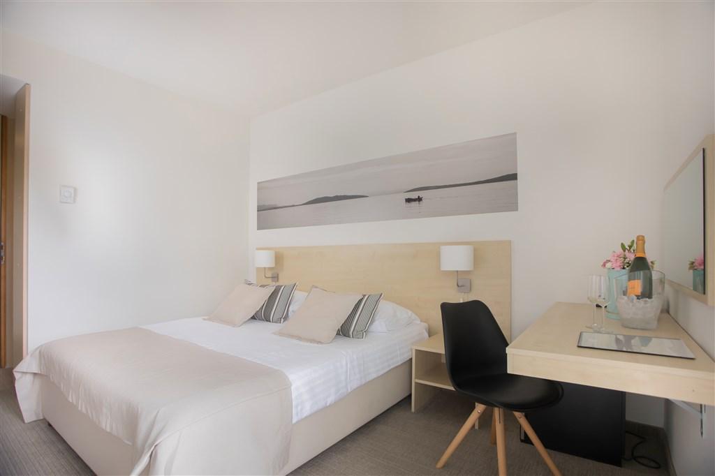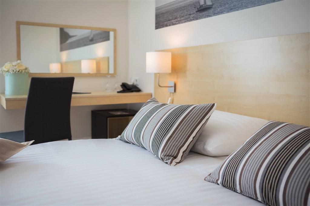 Klimatizované dvoulůžkové pokoje Standard nebo Superior možností přistýlky, se sprchou a WC, fénem, SAT/TV, telefonem, minibarem, trezorem, Wi-Fi, balkonem. Možno ubytovat dítě do 2,99 let bez lůžka ZDARMA nad kapacitu pokoje. Dětská postýlka na vyžádání ZDARMA. |