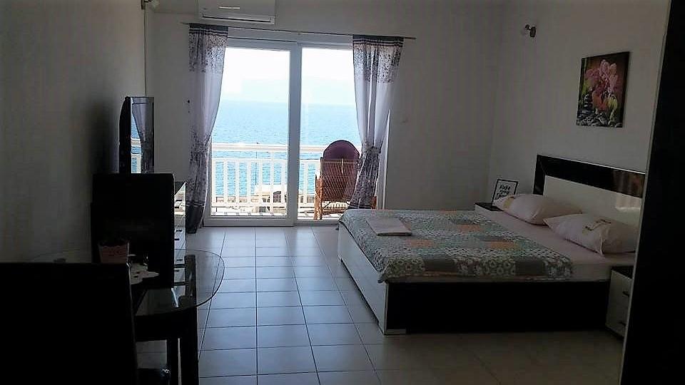 podlaží neurčeno: studio (1 x manželské lůžko, kuchyňský kout, jídelní kout, balkón, výhled: na moře), koupelna (wc, sprch. kout, umyvadlo)